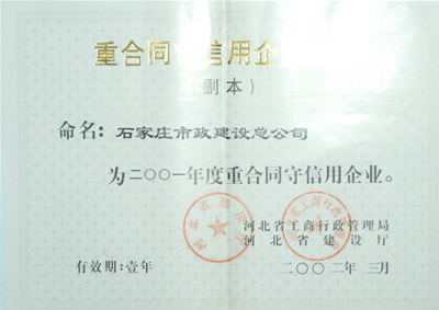 2001年重合同守信譽(yù)單位